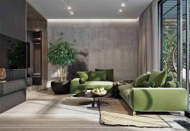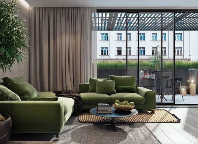 整體極簡主義風(fēng)格表露無疑,通過家居配色的深淺變化,使空間產(chǎn)生了一種流動(dòng)性,更為靈動(dòng)歡脫。綠色植物的點(diǎn)綴給整個(gè)空間帶來了活力和舒適自然的感覺。落地窗透過的自然光,讓它們保持生機(jī)。