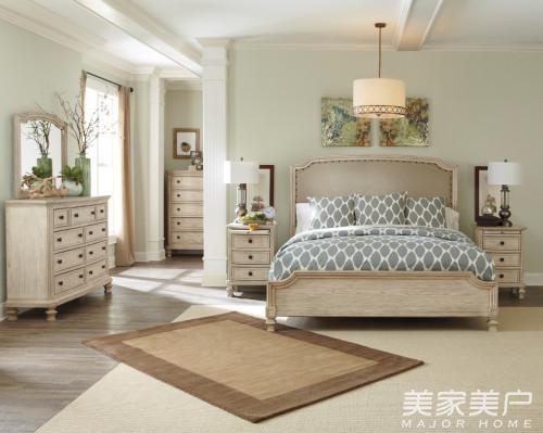 帶有自由休閑風(fēng)的Demarlos系列主臥室采用精選白臘飾面和硬實(shí)木制作而成,配以羊皮白色仿古磨損飾面。