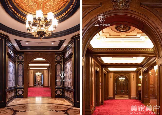 標(biāo)準(zhǔn)歐式長(zhǎng)廊設(shè)計(jì),在非常有限的空間,通過合理地布局,將吊頂、墻壁加以融合達(dá)到整體效果,讓過道顯得更加大氣,豪華。