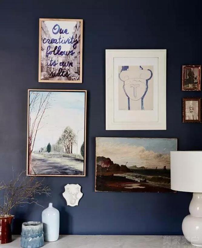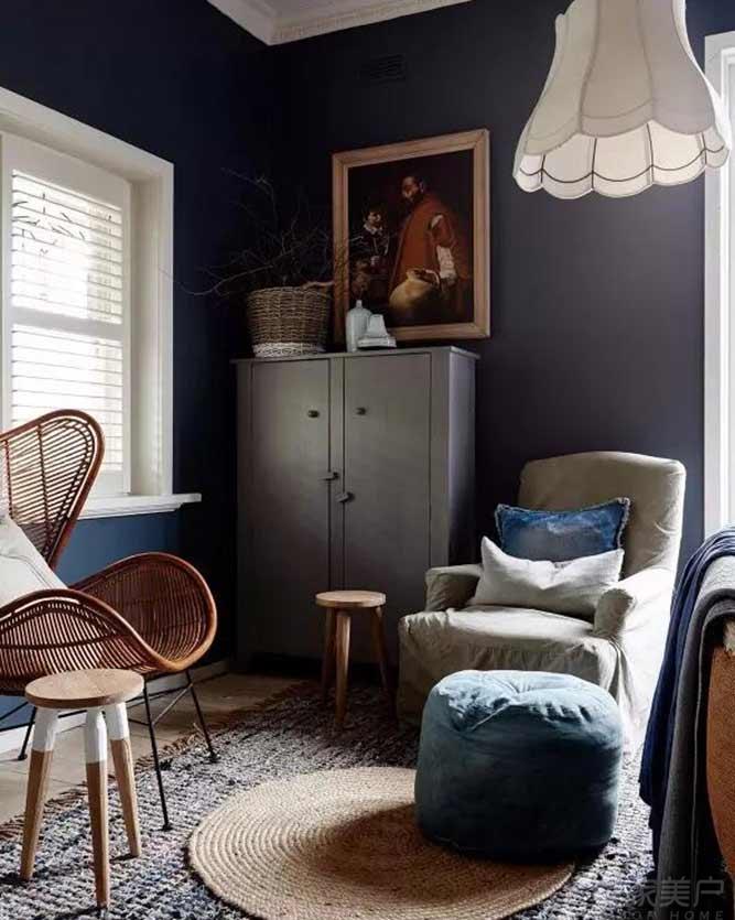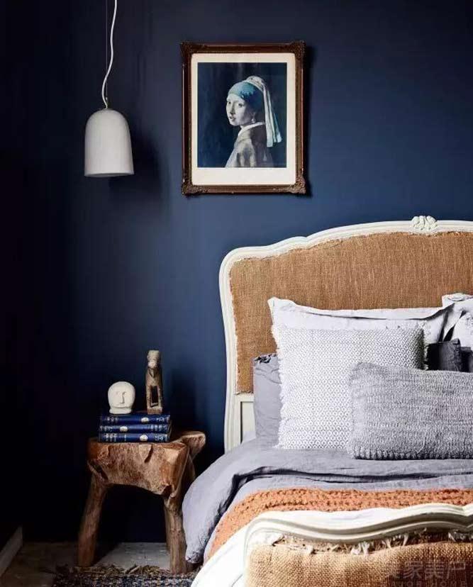 臥室和其他空間很不一樣,墻面被戲劇性的刷成了藍墨色,沒有什么特殊的材料,多樂士的一款涂漆而已。穿過明亮的客廳和走廊,你可能會覺得主人實在有點喜怒無常。但你不得不感嘆設計師對于空間和色彩的把握。