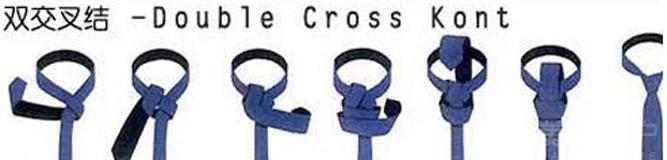 4.雙交叉結:這樣的領結很容易讓人有種高雅且隆重的感覺,適合正式之活動場合選用。該領結應多運用在素色且絲質領帶上,若搭配大翻領的襯衫不但適合且有種尊貴感。