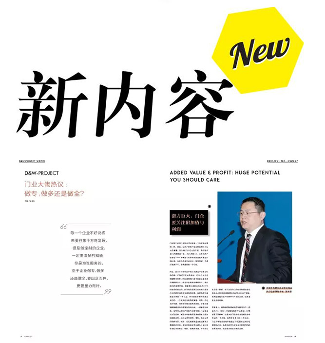 雜志內容從專題、采訪、動態進行了內容的升級,爭取內容范圍的擴大以及精致化、實用化,在此之上我們也新增了設計生活和品牌之選兩個板塊,為大家呈現以往所沒有的、有趣的裝修、設計資訊。