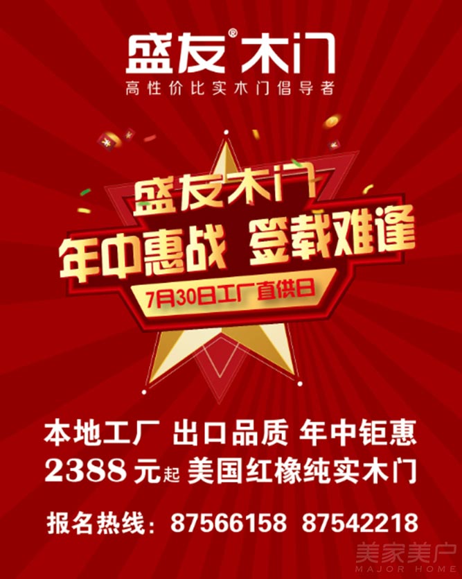 2388元買盛友北美紅橡實木門?真有這么好的事?是的,您沒有看錯,盛友木門年中惠戰只在7月30日工廠直供會,僅此一天,再也沒有比工廠直購更實惠的了!
