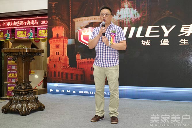 東威利海口旗艦店總經(jīng)理于剛發(fā)言:“大家好,歡迎大家來到海口,尤其是遠道而來的全國各地的東威利家人們,歡迎你們。在座都是行業(yè)里面的精英,我們都知道,產(chǎn)品只是產(chǎn)品,而產(chǎn)品后面?zhèn)鬟f的品牌的精神和文化,具有人性化和先進的設計理念,還有生產(chǎn)工藝上追求完美的品質,這一切,才是這個品牌的靈魂和精髓。東威利是一個有著悠久歷史的品牌,起源于加拿大,發(fā)展于香港,遍布中國大陸地區(qū),服務全球富戶60余年。這一定位和我們誠輝公司致力為海南成功人士打造量身定制的品味生活是非常符合的。今天我們的主題是【齊鑒】,這個主題是有含義的,第一、我們的海口東威利展廳目前是東威利全國展廳最新,風格最多樣,生活場景最豐富的旗艦展廳;第二、我們今天邀請在座的各位業(yè)界精英一起品鑒東威利帶給我們的城堡生活。歡迎各位以后多給我們指導,我們需要向大家學習的地方還有很多。最后,祝各位來賓生活愉快,生意興隆! 謝謝大家!”