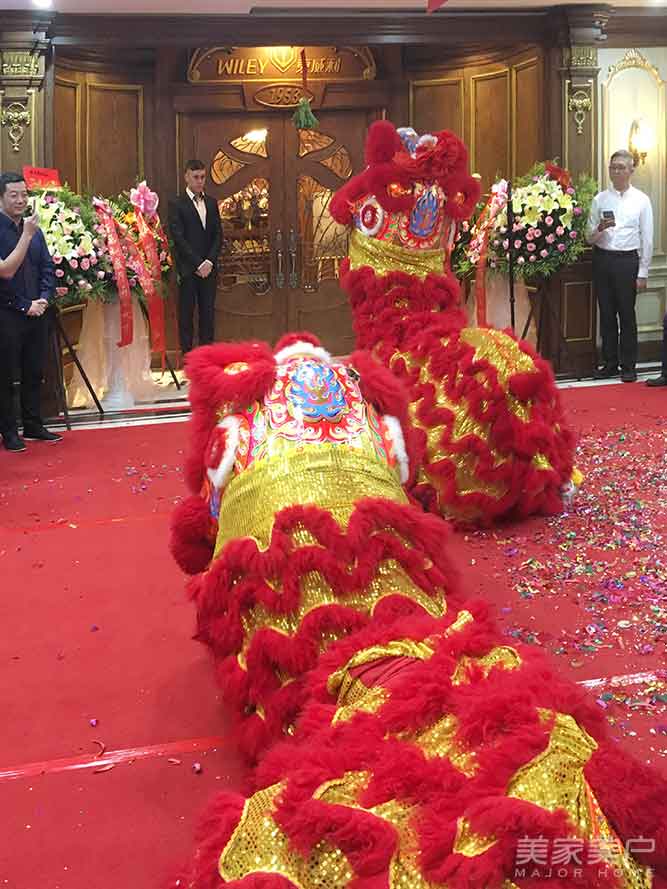 嘉賓致辭在掌聲中結束,接著鑼鼓聲起,醒獅舞動,引導嘉賓們來到東威利展廳開業(yè)剪彩。