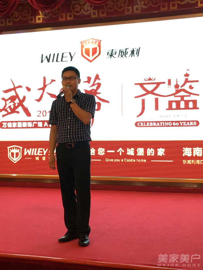 萬佳家居裝飾廣場董事長羅文上臺發(fā)言:“作為追求優(yōu)質品牌和完善服務的建材賣場,我們?nèi)f佳家居裝飾廣場也非常榮幸地引入東威利品牌,并且非常榮幸地看到全國的旗艦店落戶萬佳家居裝飾廣場。相信,通過東威利,海南誠輝公司以及萬佳廣場的共同配合,我們一定能攜手共進,開創(chuàng)輝煌的未來!”