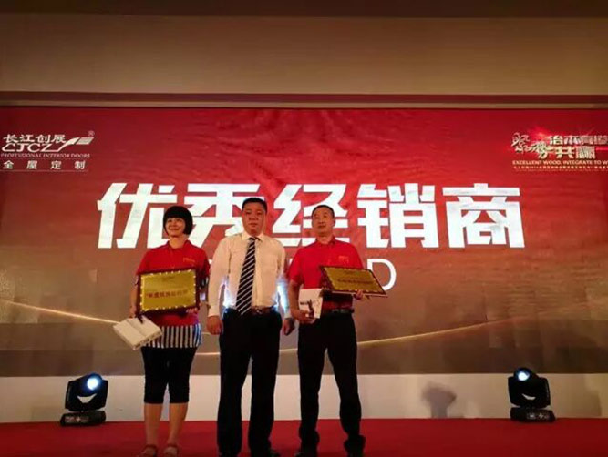 在本屆全國營銷峰會的新品發布會環節,長江創展用產品說話,不僅推出了2016原木門新品,還隆重展示了整木衣、櫥柜,天花吊頂、酒窖酒柜、樓梯、廳柜、屏風等系列全屋定制最新研發成果,并獲得了經銷商們的大力贊賞。經銷商們的認可宣告了長江創展全屋定制時代的到來。