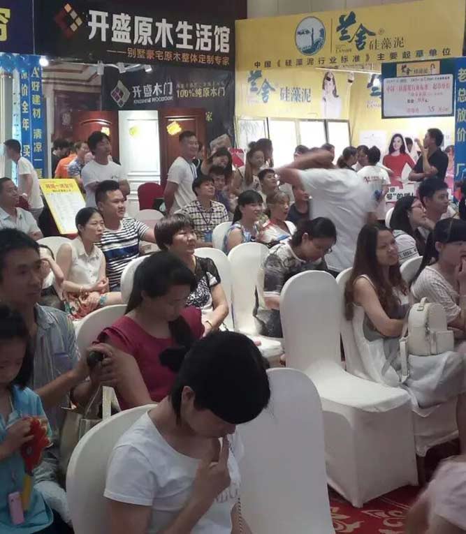 活動現場,大家熱情高漲,為廠家開出的巨大優(yōu)惠價振奮不已。在開盛展位前,前來咨詢的消費者絡繹不絕,擠滿了前來咨詢的客戶。有的咨詢此次活動的巨大優(yōu)惠,有的咨詢查看著產品的質量,有的向工作人員詳細詢問開盛木門的制作工藝…