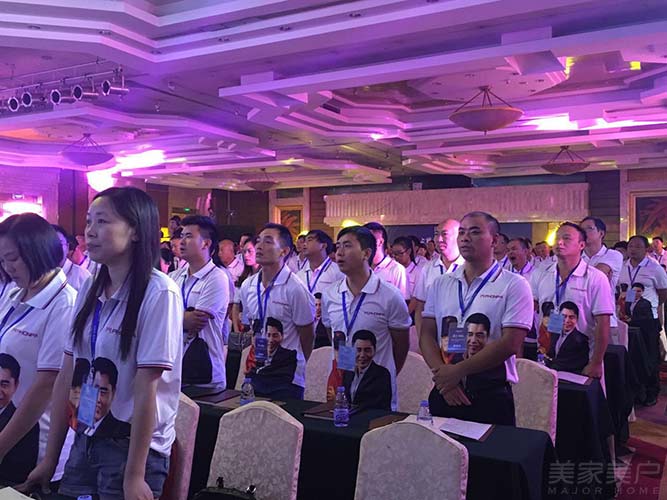 新格局、新領航,恰逢第十七屆建博會開幕之機,皇派門窗再一次迎來了新飛躍、新展示。7月5日,“謀局·領航”皇派門窗第九屆戰略合作伙伴峰會在佛山楓丹白露酒店隆重舉行。皇派門業有限公司董事長朱福慶、皇派門業有限公司總經理康同義、紅星美凱龍總部招商部長周曉峰、紅星美凱龍總部招商經理李占強、網易家居銷售總監黃苑昌、冠軍聯盟秘書長管琪林等領導嘉賓出席活動現場。隨著精彩的舞蹈和激昂的皇派之歌,峰會現場高朋滿座,精彩不斷。