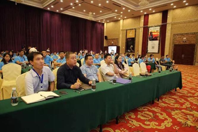 7月的廣東佛山,艷陽高照,熱情似火。 但與金悅家人回家的熱忱相比,也黯然失色。7月5日一大早,從全國各地趕來的家人們便準時來到廣東佛山。優秀經銷商代表受到了總部家人的熱情接待。9點,金悅門窗經銷商峰會正式召開,伴隨著熱烈的掌聲,金悅門窗董事長曾董及總經理周總帶領集團高層一行進場。