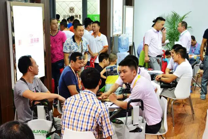 展廳里,不管是華麗的皇者系列,還是簡約的柏林系列在燈光和裝飾物的襯托下更顯尊貴,受到了參展來賓長時間的駐足欣賞。不少觀眾通過觸摸,推拉等方式親身體驗產品的流暢度與舒適度,每一個產品展示區都成為了人群的聚集之地。