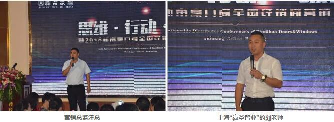 隨后,上海“贏圣智業”的劉老師為與會人員進行了以“營銷破局”為主題的課程開講。劉老師圍繞改變老板和員工的思維方式、老板以實際行動作改變、最后實現突破生意難做的困局這幾個方面進行分析講解。激情洋溢,勞逸結合的授課,讓在座的經銷商都有所共鳴。
