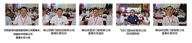 住建部建筑門窗系統課題組負責人、中國建筑門窗系統聯盟副理事長兼執行總工、濟南德佳機器控股有限公司董事長、易窗軟件有限公司董事長鄧小鷗,中國建筑門窗系統聯盟常務理事、副總工、沈陽樂道鋁建筑系統有限公司總經理胡寶升,山東華建鋁業集團副總裁、山東博雅展覽有限公司總經理丁三蓮,廣東省門業協會鋁門窗專委會會長、佛山派雅門窗制品有限公司董事長李鈞洪,廣東省門業協會副會長、佛山市皇派門窗有限公司董事長朱福慶,四川門窗業協會鋁門窗專委會會長、飛宇門窗科技有限公司總經理陳剛,佛山軒尼斯門窗有限公司董事長曾慶偉。