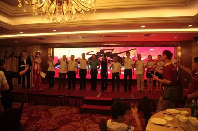 夕陽西下,晚霞染紅天際,也寓意著富軒峰會的圓滿成功!晚上19:00,富軒精心籌備的頒獎晚宴,在一段激動人心的打鼓聲中拉開序幕。廣東廣播電臺主持人邀請富軒門窗出席的高層領導人上臺,與家人們一起高舉盛著美酒的杯子,舉行簡單祝酒儀式。