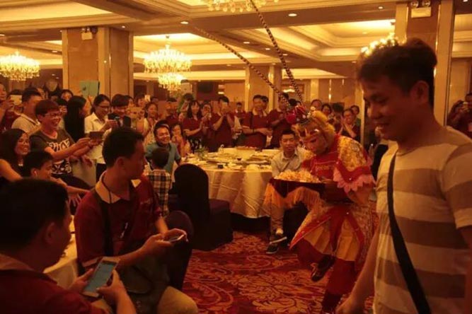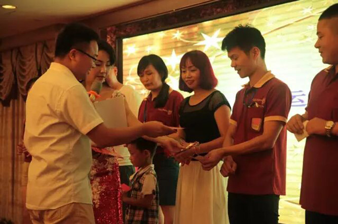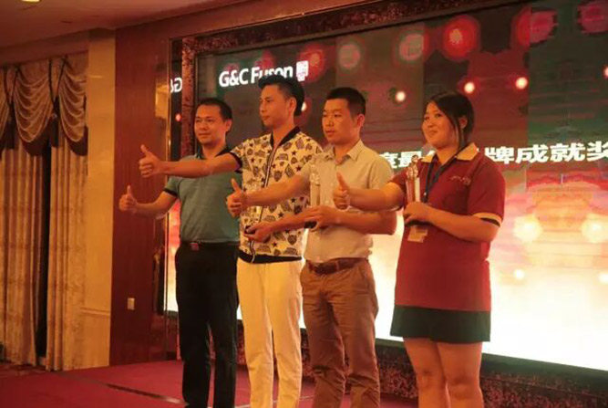 觥籌交錯,歡聲笑語,富軒李董與家人們一起共進晚宴。期間,舉行了頒獎典禮,分別頒發了2015-2016年度最佳品牌潛力獎、最佳品牌合作獎、最佳品牌成就獎,恭喜獲獎者,也非常感謝全國各地的加盟商為富軒的進步貢獻自己的力量和汗水。一個個精彩節目穿插上演,富軒外貿部《愛》手語舞、銷售部《霸王別姬》舞蹈、加盟商演唱經典歌曲、MJ模仿者勁歌熱舞、專業爵士舞表演……當然,還有激動人心的抽獎活動,現場歡呼聲、掌聲雷鳴般響亮,高潮迭起。富軒家人們喜不勝收,共同渡過了一個美妙而激動人心的夜晚。難忘今宵,讓我們相約明年再見!