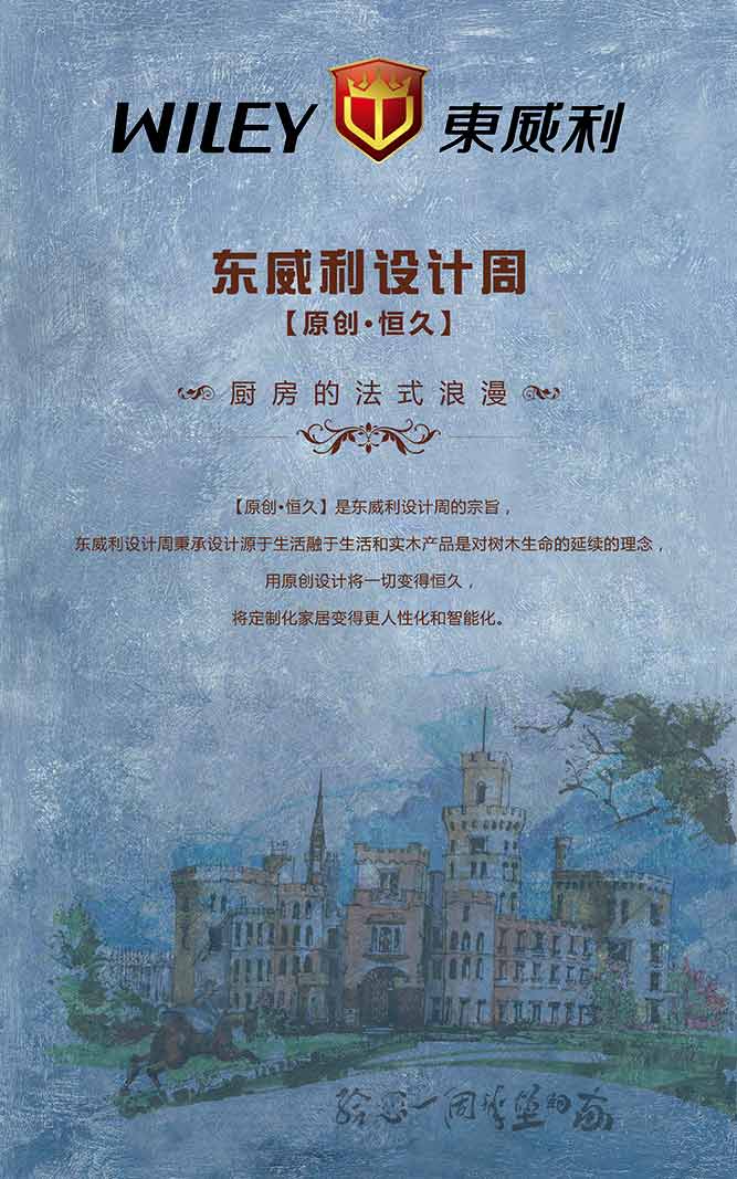 「原創·恒久」是東威利設計周的宗旨,東威利設計周秉承設計源于生活融于生活和實木產品是對樹木生命的延續的理念,用原創設計將一切變得恒久,將定制化家居變得更人性化和智能化。