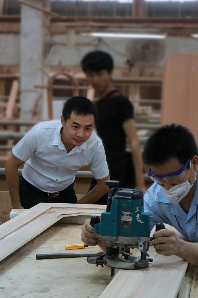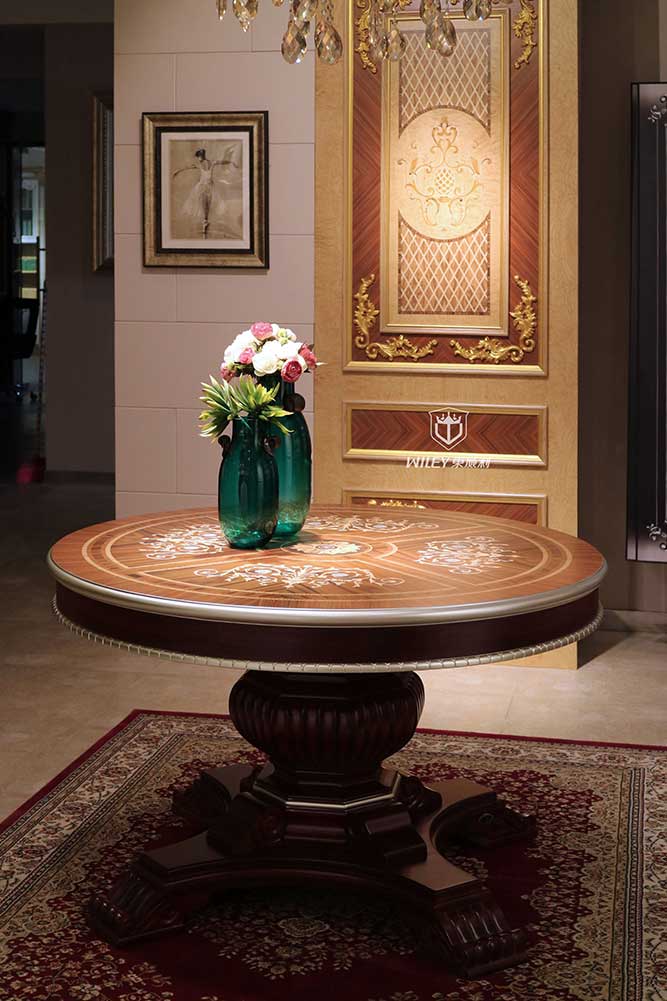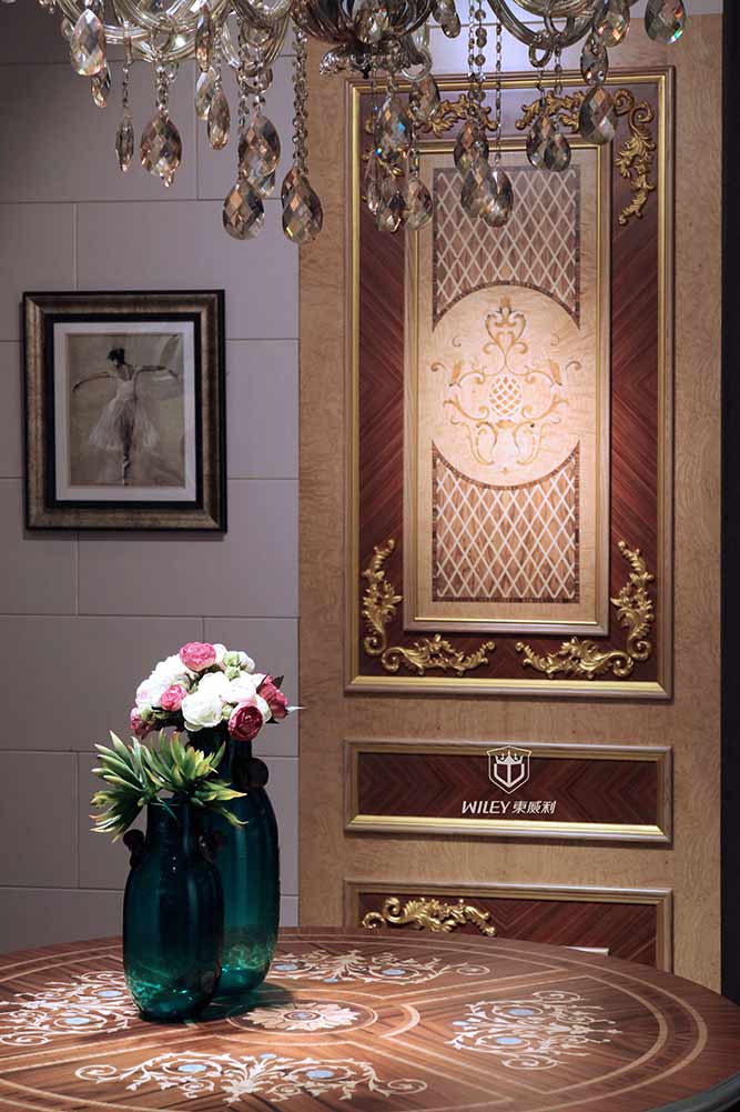 跟法式櫥柜一起展出的還有東威利的高端貼皮餐桌和護墻板,以及升級版梯枝。