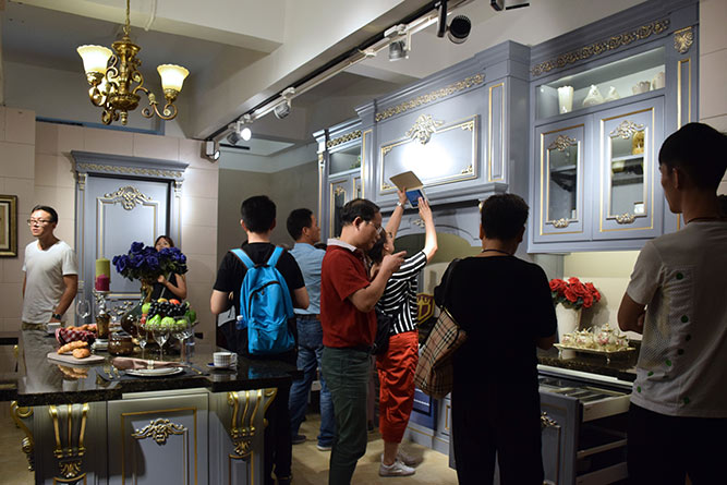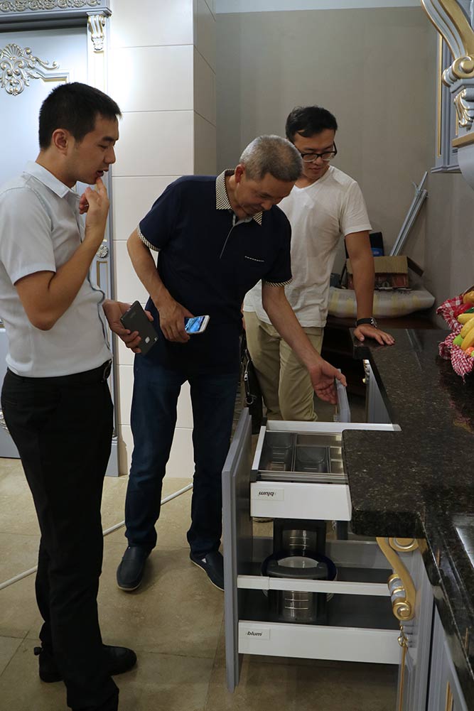 葉總語言生動地把法式櫥柜的每一個功能細節講解完畢,嘉賓們移步展廳現場體驗法式櫥柜新品。