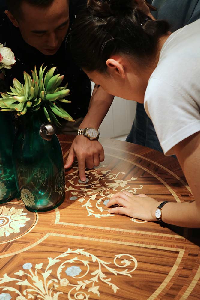 時至今日,人們更關注“貼皮拼花”這門工藝的本身價值——古老的拼花家具在這種工藝上面的精湛程度,是現代家具所無法比及的,一件精美的拼花家具表面,也許使用了上百種不同的木料薄片,但一眼望去,不僅銜接自然而且選材精到,一塊圖案之中還可以通過烤花做到顏色漸變的效果以及陰影渲染的感覺,宛如一片天然圖畫。