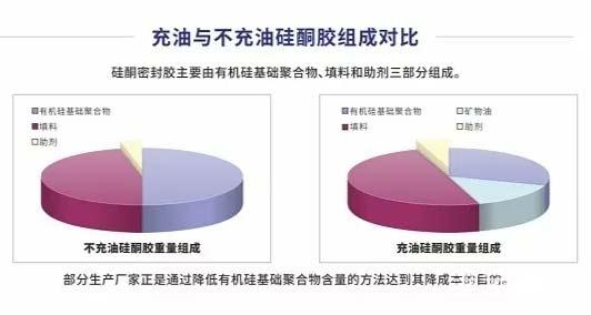 值得注意的是,“充油膠”無疑是劣質膠,但是劣質膠不局限在“充油膠”,現在也有廠家會增加填料含量來降低有機硅基礎聚合物含量。