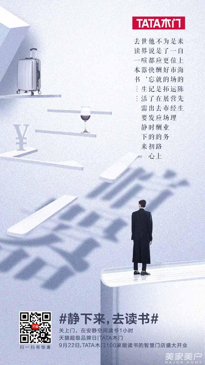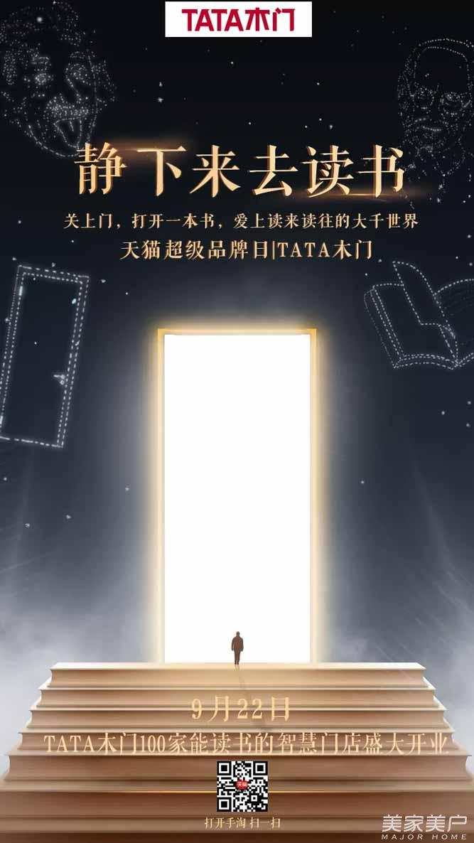 出于對人們的關懷,一直主打靜音生活的TATA木門攜手9.22天貓超級品牌日,將于線下啟動100家能讀書的智慧門店,以聯動全國的魄力號召全民“靜下來,去讀書”。