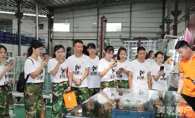 全體學員參觀百利瑪門窗現代化生產基地及法式輕奢體驗館,精湛工藝與高端設計吸引了終端銷售精英的駐足觀賞,并現場學習。