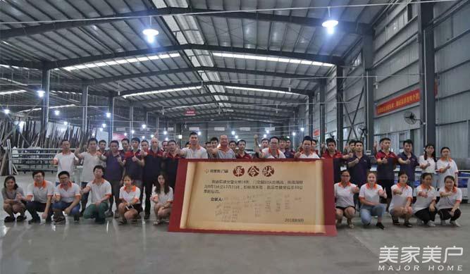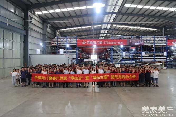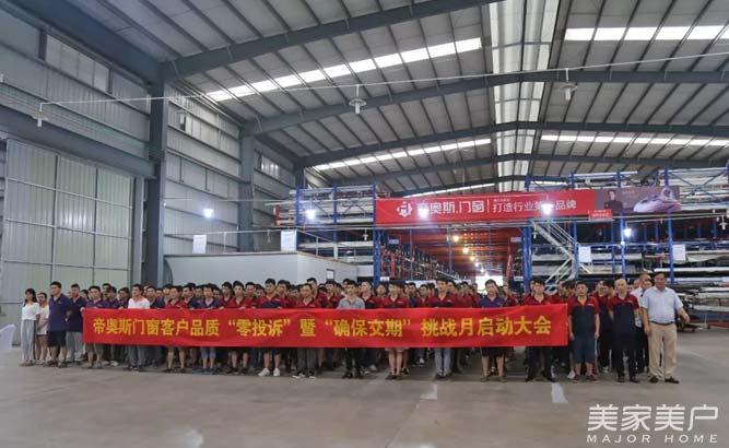 帝奧斯作為門窗領域的一線品牌,作為一家矢志成為行業標桿的門窗企業,為了提升帝奧斯全體人員的品質意識,提高客戶滿意度和公司服務質量,打破行業“潛規則”,實現2018年帝奧斯的“品牌超越”計劃,8月31日,帝奧斯在123000平米的現代化生產中心舉行了以帝奧斯門窗客戶品質“零投訴暨確保交期”為主題的挑戰月啟動大會。會上,帝奧斯董事長伍四兵先生、財務總監兼董事長助理彭翠英女士、營銷中心副總經理梁煥新先生等到場助威。現場,伍董發表了熱情洋溢的講話和祝福,現場氣氛一度達到頂點。