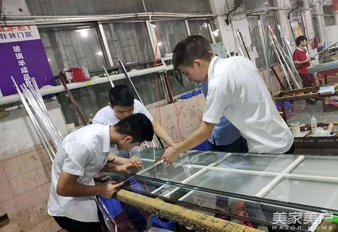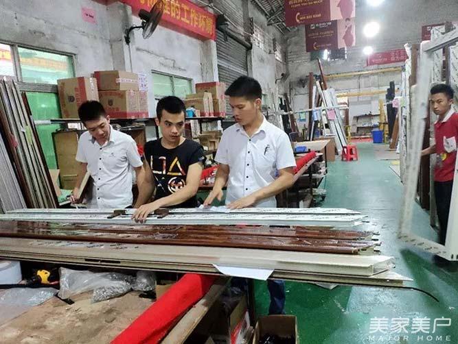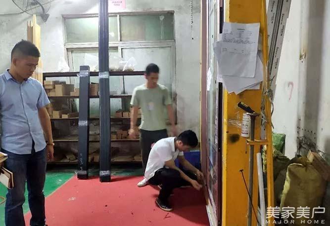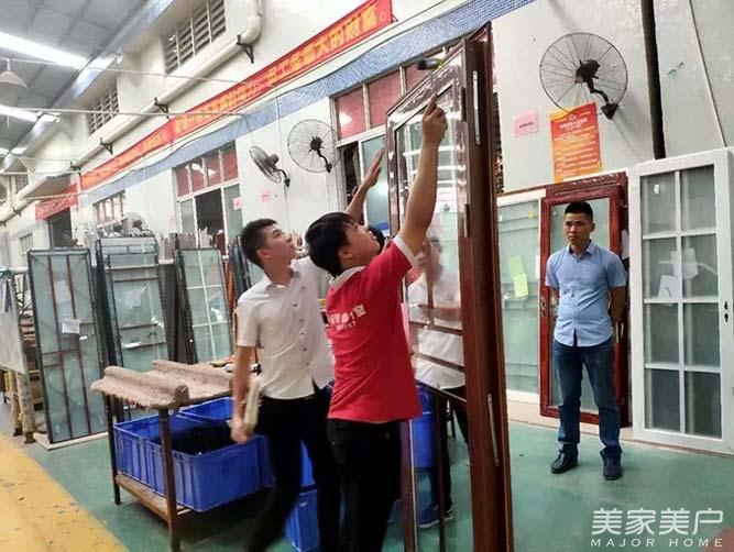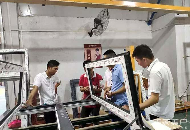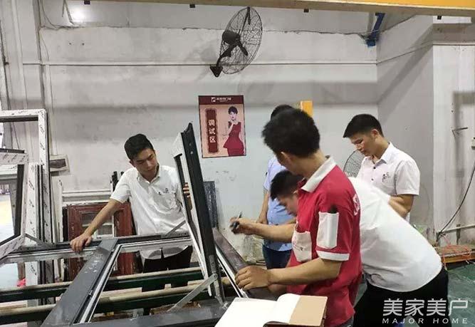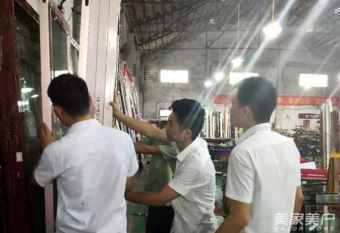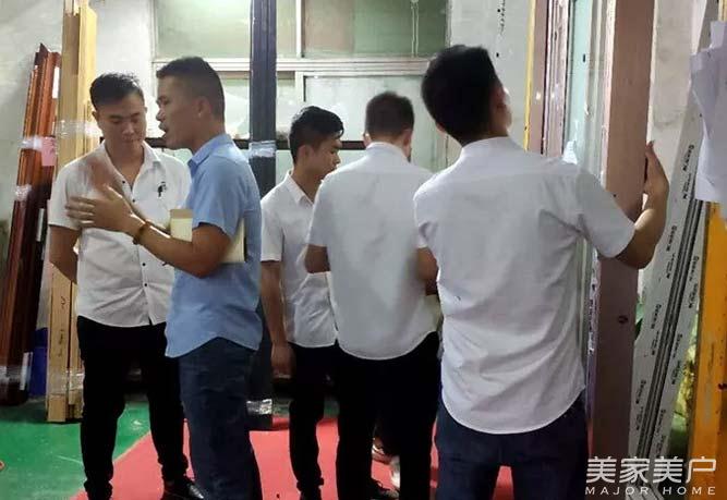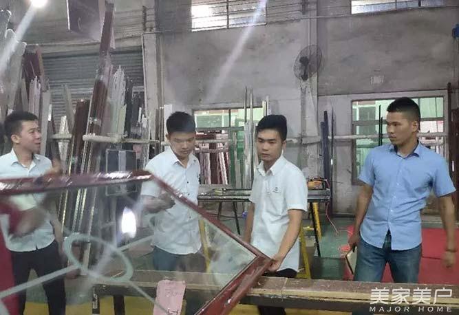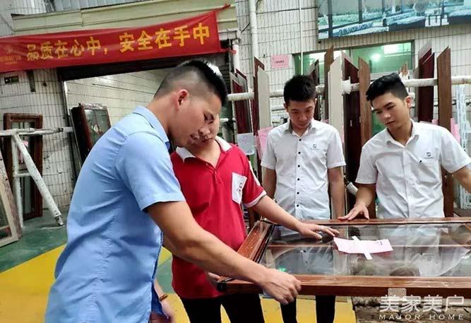 營(yíng)銷代表與生產(chǎn)班長(zhǎng)正在商討關(guān)于門窗品質(zhì)問(wèn)題