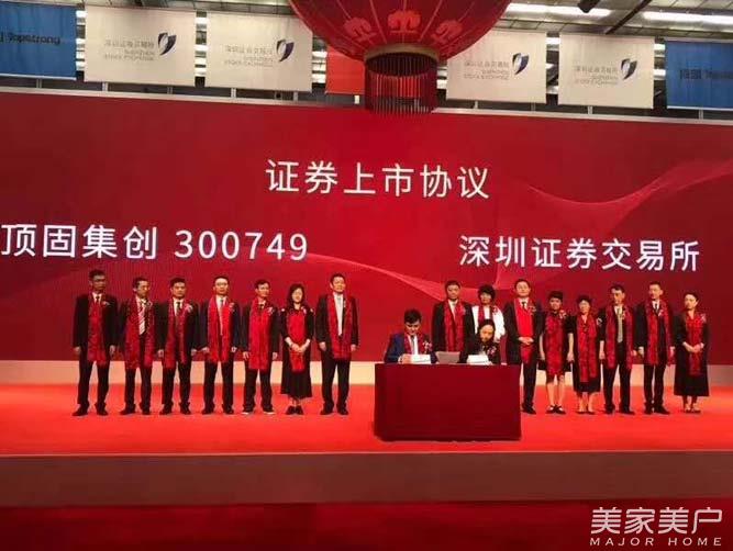 9月25日,廣東頂固集創家居股份有限公司(頂固集創)在深交所敲鐘上市,股票代碼300749,本次發行前,公司總股本為 8,548.30 萬股,本次公開發行新股不超過 2,850萬股,占發行后總股本的比例不低于 25%。本次發行價格12.22元/股,募集資金6.69億元,市盈率22.99。頂固集創本次開盤大漲44.03%,目前的市值為20.06億元。