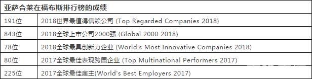 亞薩合萊集團上榜福布斯最值得信賴企業
