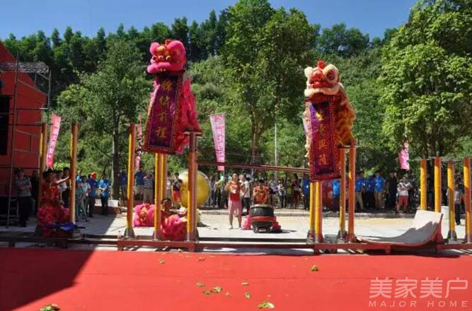 隨著陽春市常務副市長鄺東曉,廣東喜之郎集團、陽春市匯鑫投資有限公司董事總經理李鐵在營銷中心大門口“醒獅點晴”后,陽春錦繡國際商貿城營銷中心開放和紅星·美凱龍主力店開工儀式在一片鏗鏘有力的鼓樂聲中拉開帷幕,這宣告著翹首企盼已久的、立足陽春輻射粵西的全業態商貿航母至此揚帆起航!陽春市常務副市長鄺東曉,喜之郎集團、陽春市匯鑫投資有限公司董事總經理李鐵,紅星美凱龍家居集團股份有限公司副總裁顧庭綱相繼發表致辭。在主持人宣布陽春錦繡國際商貿城營銷中心開放暨紅星·美凱龍開工盛大啟動后,參會的各級領導按下了營銷中心開放暨紅星·美凱龍開工的啟動鍵并寄語陽春錦繡國際商貿城在今后的發展中取得更大的成就,以大規模一站式全業態的先鋒商貿綜合體模式,立足陽春,輻射粵西,從而改寫城市商貿格局,為推動陽春城市經濟發展締造一流商貿平臺。