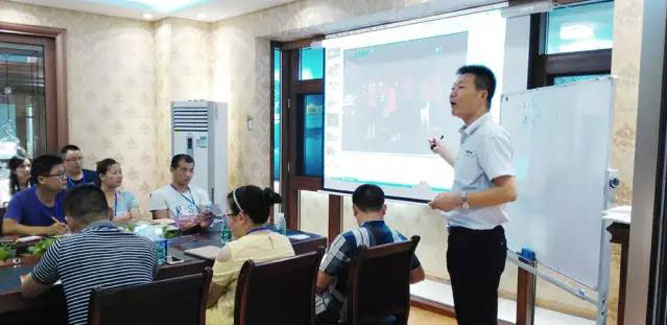 接下來,由皇田門業陜西生產基地總經理楊斌為在座經銷商主持分享會。楊斌通過皇田門業的團隊展示以及“店面考核認識”,從實際操作的角度深入淺出地為大家講解店面運營知識,干貨滿滿。