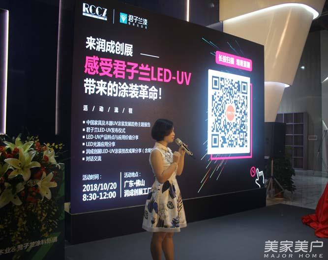 2018年10月20日,由君子蘭與潤成創展聯合舉辦的“LED-UV”聯合發布會在廣東·佛山潤成創展工廠舉行。以萬家園、王牌門業、可森木業、卡爾·凱旋、明風家具、美心家美、聯邦家居、韓居麗格、好萊客、碧桂園筑美、瑪格家居、仁豪家居、挪亞家、健威家具等為代表的六十余家家居制造企業親臨現場,共同見證了君子蘭"LED-UV"帶來的涂裝變革。