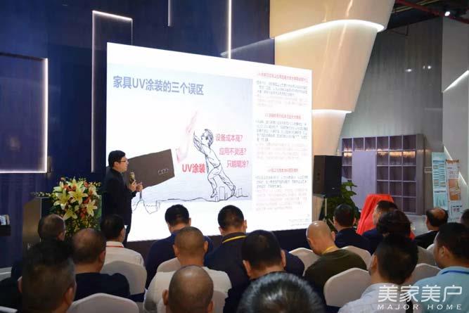 本次活動,中國家居數據研究院CEO蔣健先生對“中國家具及木器UV涂裝發展趨勢”做了主題報告。蔣總表示,UV漆涂裝是中國家具及木器制造領域“最應該重視的領域”,并現場分享對于家具木器UV涂裝三個誤區,四大突破和未來發展的五個預測。