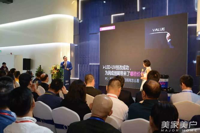 潤成創展總經理關偉燦先生與現場主持人家具上下游邵博士用創新的問答形式為現場嘉賓分享了三個大家最為關心的話題。潤成創展在LED-UV上線過程中經歷過的挑戰與困難和LED-UV最終的的技改成果等。