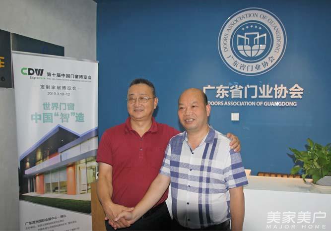 廣東省門業協會秘書長徐生(左)與暉麗門窗董事長伍世明(右)合影