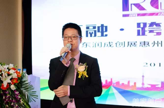 廣東潤成創(chuàng)展木業(yè)有限公司董事長關(guān)潤開、廣東合眾君實業(yè)有限公司董事長梁偉明、廣東省門業(yè)協(xié)會秘書長徐生分別上臺為本次廣東潤成創(chuàng)展惠州分公司成立致辭。