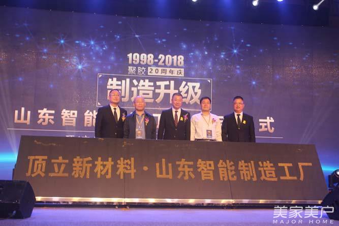 出席發布會的嘉賓有:中國膠粘劑和膠粘帶工業協會副理事長兼秘書長楊栩、江蘇省江南大學副校長顧正彪、全國工商聯家具裝飾業商會秘書長張仁江、中國木門窗專業委員會會長張國林、中國建筑業協會材料分會會長劉洪祥、中國國際家居產業發展論壇主席張仁、臨海市副市長陳福清、臨沂市林業局副局長陳志坤、郯城經濟開發區書記藺勝運、南京林業大學家具與工業設計學院副院長徐偉、蘇州大學科學技術研究部科技成果轉化處處長龔學鋒、偉星新材董事長金紅陽、沿江鎮書記金振波、廣東潤成創展董事長關潤開、鑫迪木門總裁張志華、國金證券總經理嚴衛、天健會計師事務所高級合伙人程志剛、中國木門窗專業委員會常務副會長兼秘書長張鵬、深圳市家具行業協會副秘書長劉麗娜、廣州市家具行業協會秘書長陳允、天津市家具行業協會會長高秀芝、山東省家具協會會長牛廣霞、成都市家具行業商會會長古皓東、廣東省定制家具協會秘書長曾勇、浙江省粘接技術協會理事長范宏、中國建筑業協會材料分會副會長張仲玲、南京林業大學家具與工業設計學院教授吳智慧、廣東東升門業協會會長司徒立權、山東萬家園木業總經理王紹新、青島一木董事長葛炳江、孟氏木門董事長孟慶全、沿江鎮鎮長趙學群、廣東省門業協會秘書長徐生、TATA木門集團采購總監宋春海、江蘇肯帝亞木業采購總監王永剛、佛山市江西省九江市商會執行會長黃詩吉、福建省定制家居行業協會會長張翔、亞興貿易總經理張朝政、廣西震鑠木業總經理黃劍斌、香柏年總經理趙金龍、嘉寶莉副總裁周強、中國涂料經銷商聯盟秘書長歐美、百仕高總經理錢小華、圣奧家居副總裁陳圓芳、廣州市定制家居行業協會會長王天兵、匯龍漆董事長陳輝庭、四川廣漢農商行行長黃登東等的見證下,在頂立200多家優秀銷售公司代表和50多家上游供應商的見證下,在騰訊家居以及網易、今日頭條、鳳凰、搜狐、新浪、美家美戶、家居薈等主流媒體的見證下,經過20年的成長和發展,頂立不僅成為中國膠粘行業的尖端品牌,更在二十周歲之際,發布了品牌新戰略,推出了2018新產品,啟動了山東智能制造新工廠,并建立了頂立CNAS國家認可實驗室,與蘇州大學共建新材料研發中心,以一系列行業重磅之舉為下一個20年光輝歲月開啟新的征程。