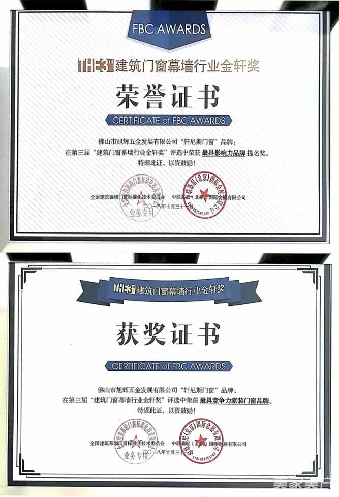 璀璨光輝·榮耀凱旋,軒尼斯門窗榮獲建筑門窗幕墻行業金軒獎