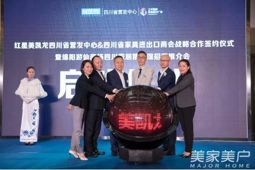 在會上,紅星美凱龍攜手四川省家具進出口商會聯合打造四川家居新平臺“紅星美凱龍四川家居精品館”榮耀啟幕!