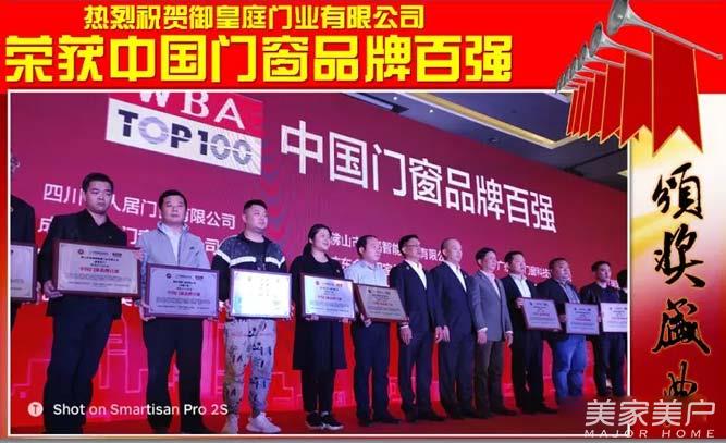 熱烈祝賀皇庭金門獲得《中國門窗品牌百強》企業榮譽稱號!