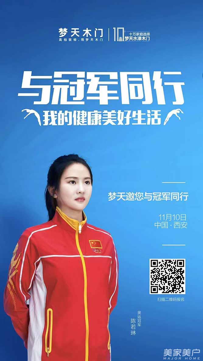 11月10日,夢天木門將攜手奧運冠軍陳若琳,聯合全國工商聯家具裝飾業商會、當代人居生活方式研究院、西安大明宮建材家居,共聚千年古都西安。夢天木門2018 與冠軍同行——“我的健康美好生活”發布會,邀您共同探索健康美好生活。