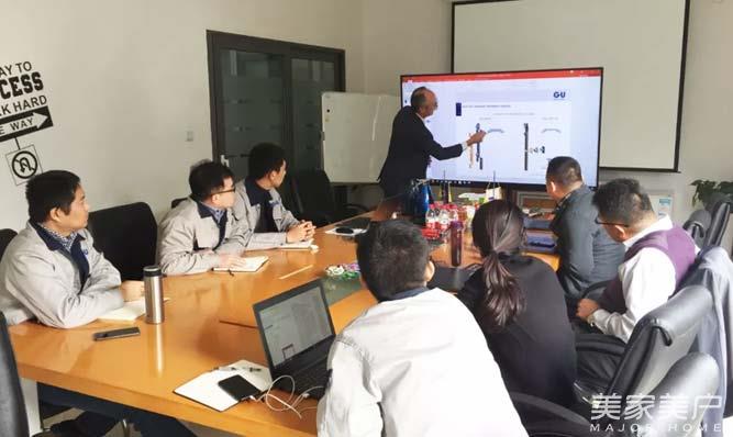 第一站,高茨先生首先來到GU上海總部,對GU技術部進行了一場內部培訓。培訓中,高茨先生還規劃了GU在中國的培訓中心,在規劃中,GU與世界門窗行業的最新技術對接將更加的同步、更加高效率。