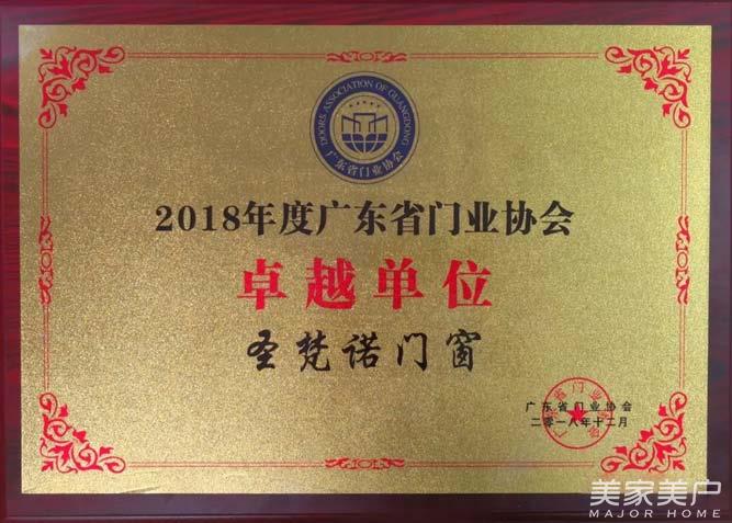 廣東門業協會副會長單位——圣梵諾門窗繼2016年度榮獲廣東門業優秀品牌之后,今年榮膺《2018年度廣東省門業協會卓越單位》。