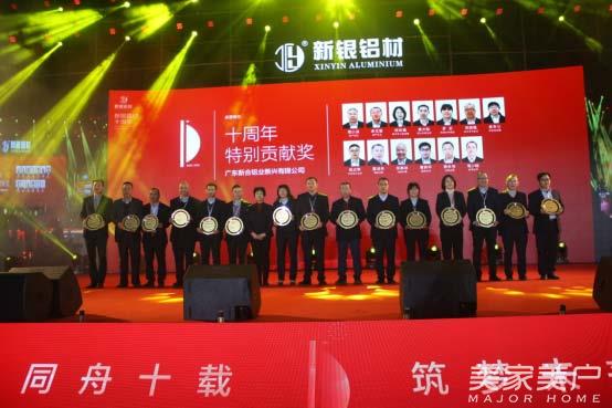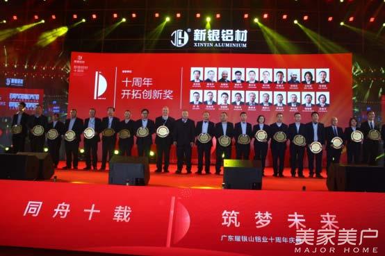 致辭過后,新銀鋁業(yè)還對發(fā)展十年以來的合作伙伴、卓越員工、經(jīng)銷商們授予獎牌,感謝他們十年如一日的辛勞付出。