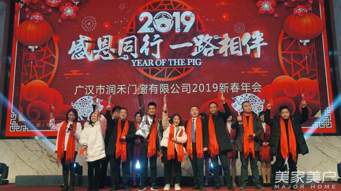 1月7日,潤禾門窗“感恩同行,一路相伴”2019新春年會隆重舉行。潤禾門窗總經理龍輝,四川省門窗行業協會秘書長余龍鵬、會員部經理何健榕、李芒以及公司全體員工、合作商、供應商、經銷商、媒體代表等300余人參加了年會。