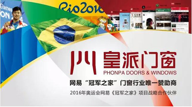 2016,奧運(yùn)年,里約盛會(huì)舉世矚目,皇派攜手網(wǎng)易打造”冠軍之家“,作為門窗行業(yè)唯一贊助商,皇派秉持專注持久匠心筑夢的品牌內(nèi)核,為四年磨一劍掛帥出征的奧運(yùn)健兒助力振威。