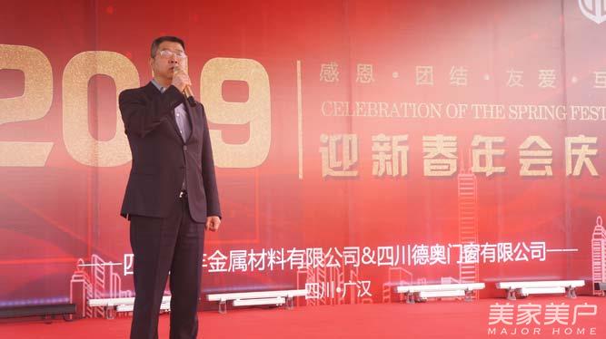 盛典上,德豐鋁材總經理黃德和首先致辭,熱忱歡迎前來參加年終盛典的各位領導和嘉賓,并對長期以來關心和支持德豐鋁材的社會各界朋友表示衷心的感謝!致辭中,黃德和回顧了公司2018年遇到的困難與應對措施,感謝每位與公司榮辱與共的員工。同時,黃德和表示,2019年,公司將層層落實責任人,嚴格考核與監督。適應市場新環境,從容應對,頂住壓力,經受住考驗,實現產業與產品的升級。黃德和呼吁,公司全體員工一定要抱團取暖,未雨綢繆,做好各個方面的準備,實現共贏的大好局面。最后,黃德和預祝大家新年快樂!豬年吉祥!