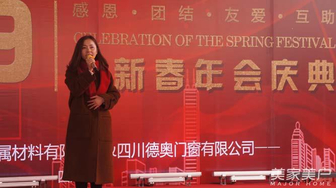 接著,四川省門窗行業協會秘書長徐丹致辭。致辭中,對德豐鋁材2018年取得的各項成績給予了充分肯定和高度贊揚,鼓勵德豐鋁材在2019年“百尺竿頭,更進一步”,各項業績繼續取得突飛猛進的長足進步。同時,徐丹希望德豐鋁材為行業的持續科學發展再接再厲,做出最大的努力和應有的貢獻。