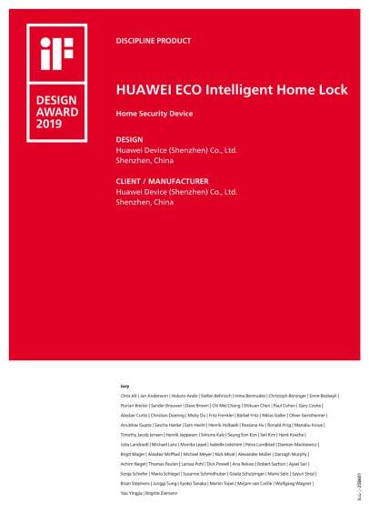 華為智選生態(tài)產(chǎn)品 匯泰龍智能指紋鎖斬獲2019 iF 國(guó)際設(shè)計(jì)大獎(jiǎng)
